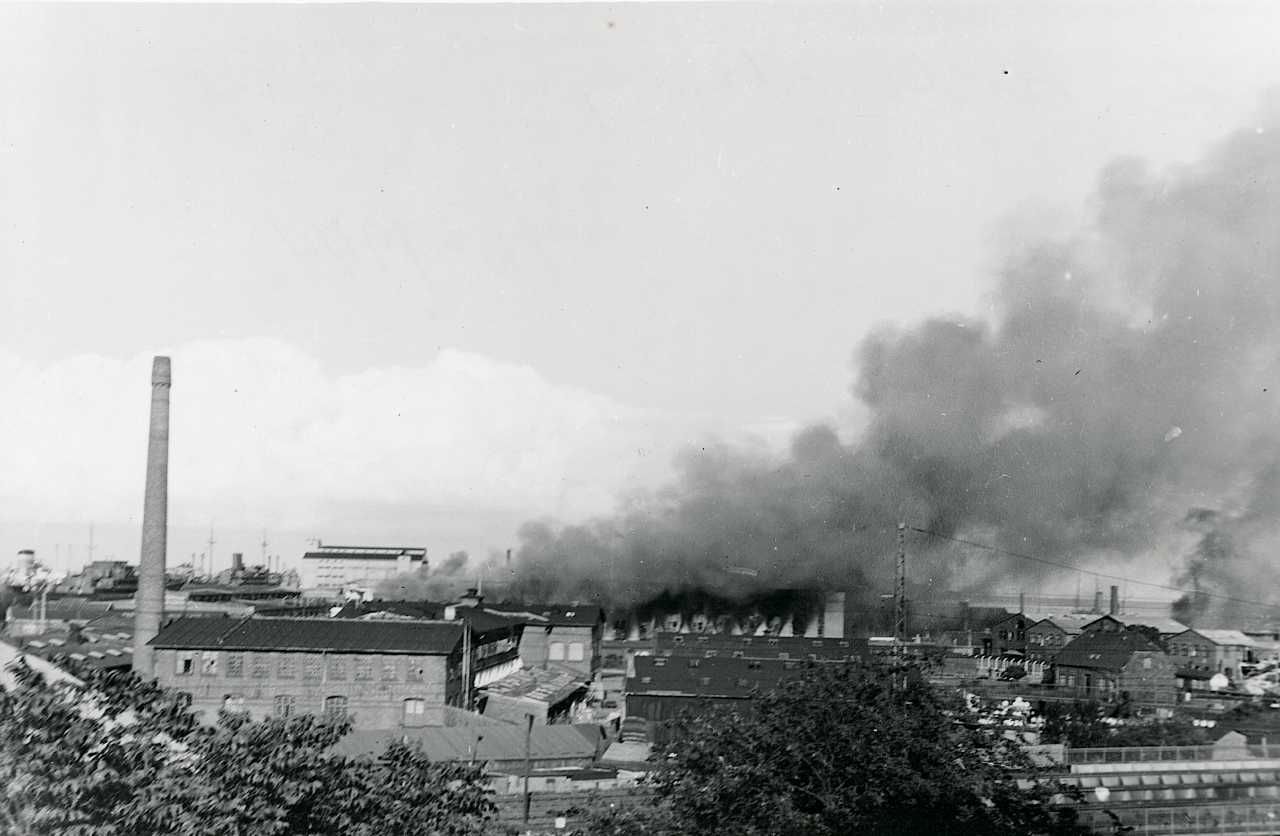 Dansk Industri Syndikat i København i brand efter sabotagen d. 22. juni 1944
