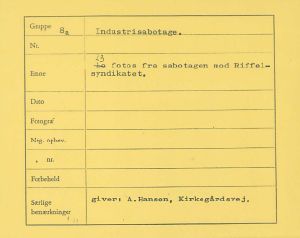 Maskingenkendt tekst fra fotokuvert: Sabotagen mod Industri-Syndikatet .