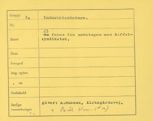 Maskingenkendt tekst fra fotokuvert: Sabotagen mod Riffelsyndikatet.