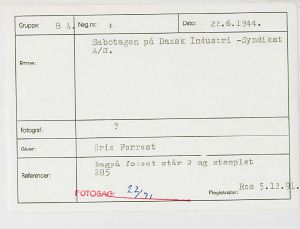 Maskingenkendt tekst fra fotokuvert: Sabotagen på Dansk Indsutri-Syndikat A/S