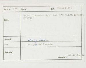 Maskingenkendt tekst fra fotokuvert: Dansk Indstri Syndikat A/S = Riffelsyndikatet.