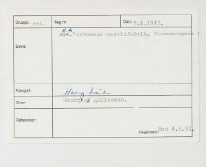 Maskingenkendt tekst fra fotokuvert: K.A. Hartmanns maskinfabrik, Vermundsgad 5