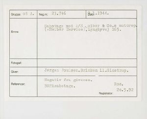 Maskingenkendt tekst fra fotokuvert: Sabotage mod A/S Heiber & Co.s autorep (Heiber Service), Lyngbyvej 165.