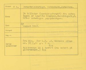 Maskingenkendt tekst fra fotokuvert: Sabotagen af Laurits Knudsen, Haraldsgade