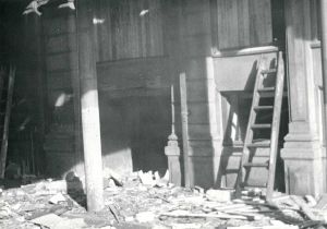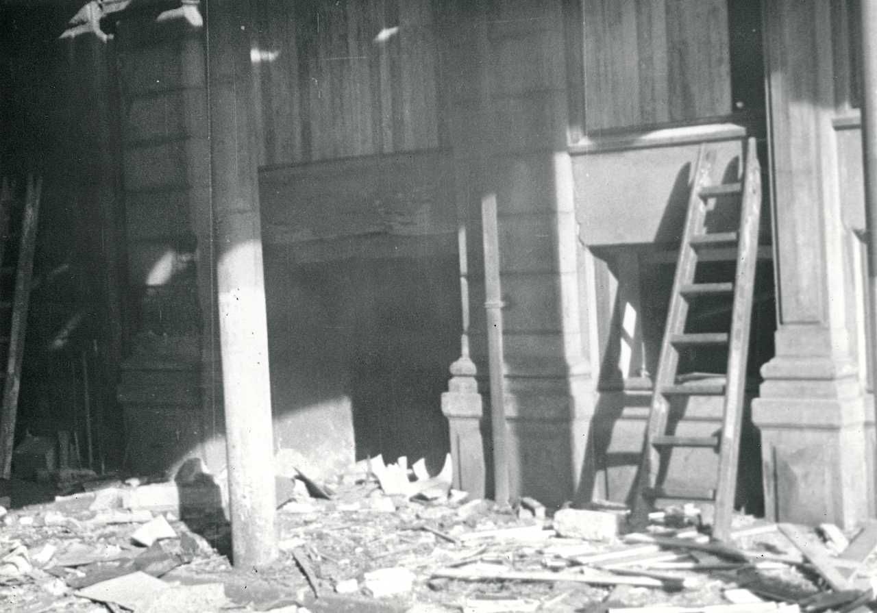 Maskingenkendt tekst fra fotokuvert: Ruiner af sprængte bygninger