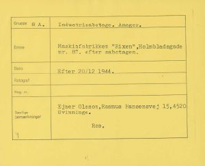 Maskinfabrikken Rixen på Holmbladsgade i København efter sabotagen den 20. december 1944.