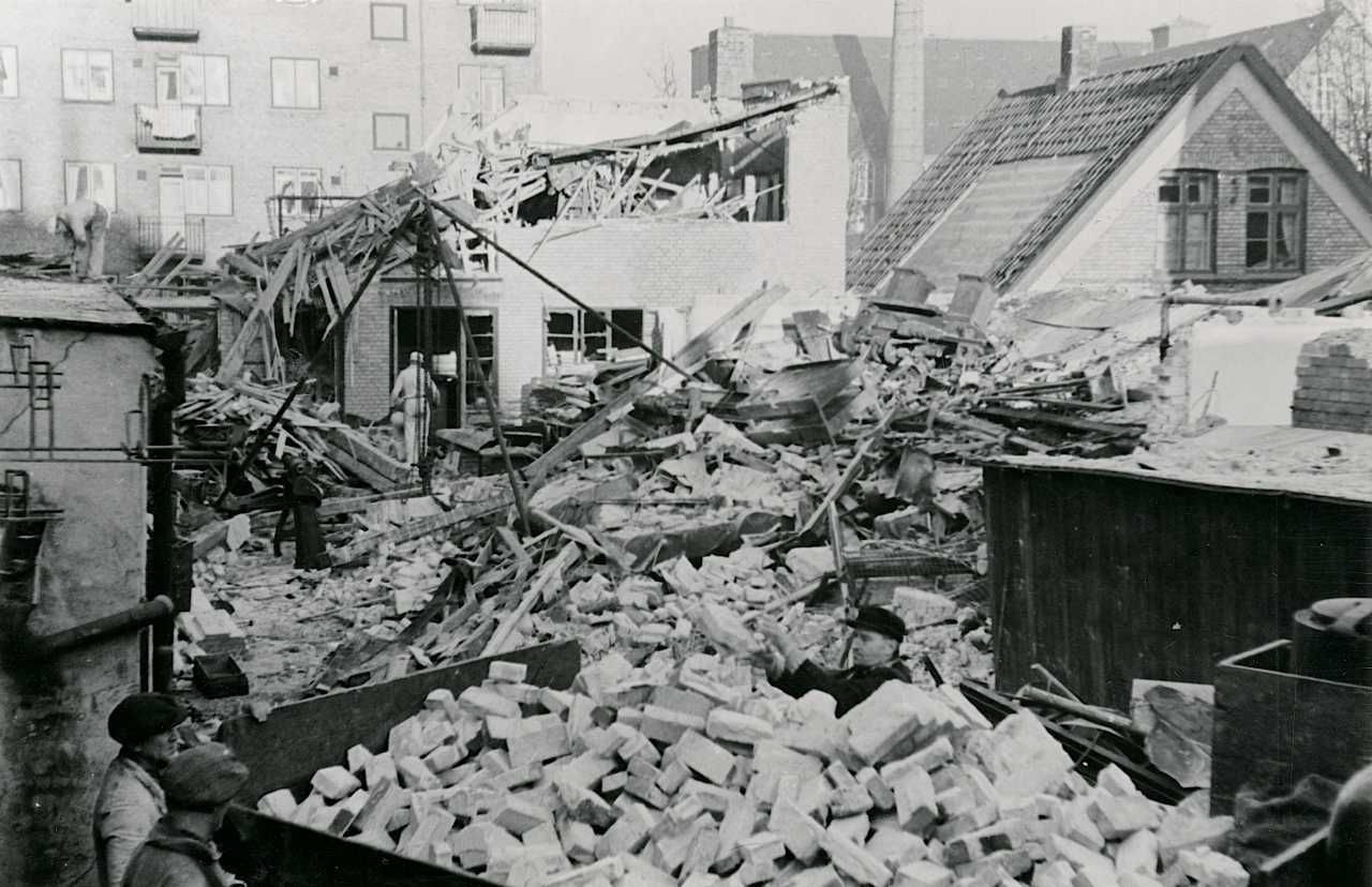 Maskinfabrikken Rixen på Holmbladsgade i København efter sabotagen den 20. december 1944.