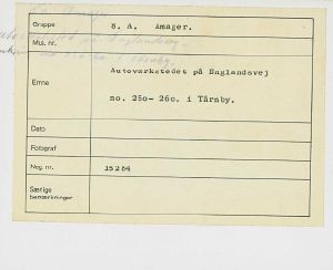 Maskingenkendt tekst fra fotokuvert: Autoværkstedet på Englandsvej no. 250- 260. i Tårnby.