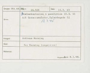 Maskingenkendt tekst fra fotokuvert: Sabotage moed gasstation tilh. A/S Gasaccumulator, Uplandsgade 52.