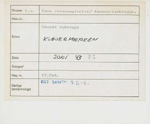 Maskingenkendt tekst fra fotokuvert: Ukendt Sabotage
