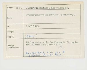 Maskingenkendt tekst fra fotokuvert: Transformatorstation på Dortheavej.