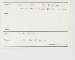 Maskingenkendt tekst fra fotokuvert: Pindtoftes Maskiniabrik, Trekronergade