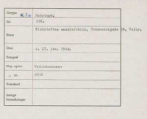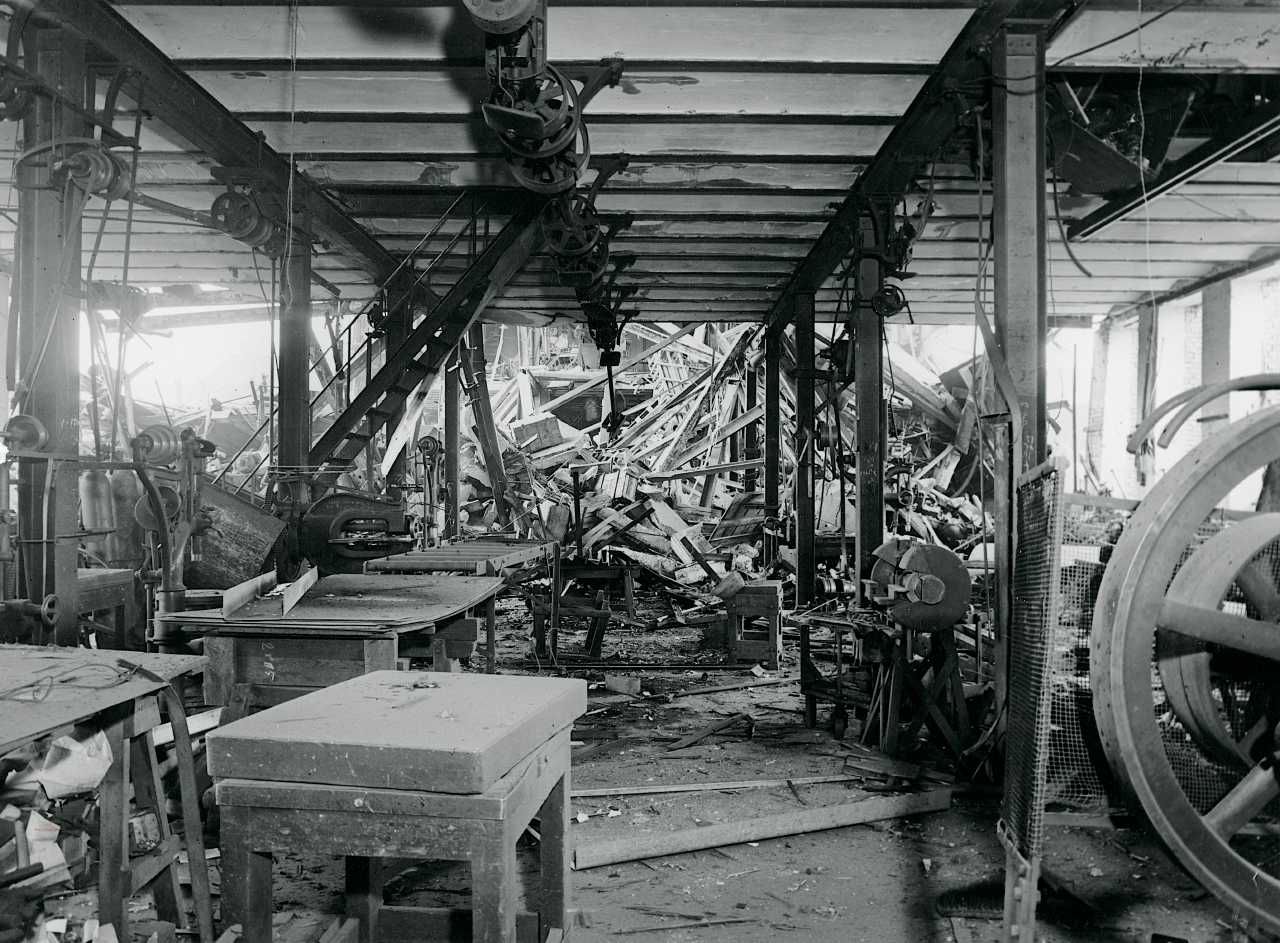 Pindstofte Maskinfabrik på Trekronergade i København efter sabotagen den 17. januar 1944.
