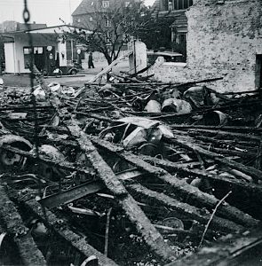 Autoværkstedet Brdr. Skovgaard-Mortensen i København efter sabotagen den 13. september 1943.