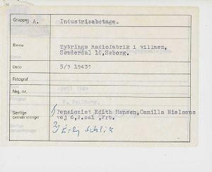 Maskingenkendt tekst fra fotokuvert: Tybrings radiodele fabrik i Søborg.