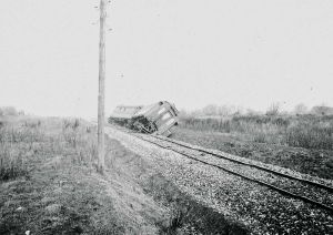 Toget Piraten efter sabotage ved Frøjk nær Holstebro. Tidspunktet kendes ikke