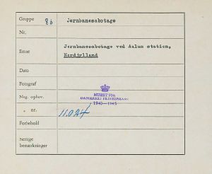 Maskingenkendt tekst fra fotokuvert: Jernbanesabotage ved Aulum station Nordjylland
