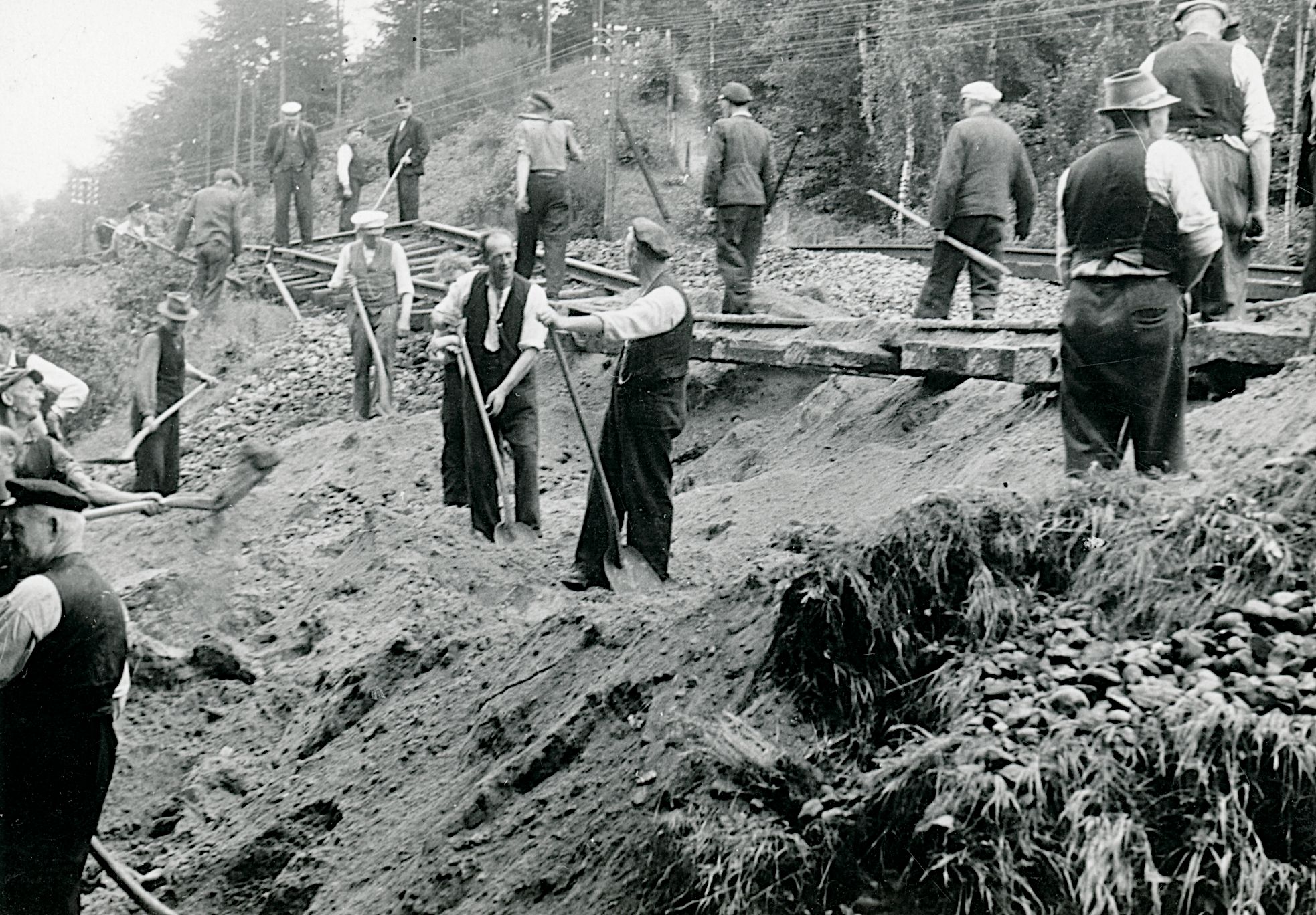Jernbanelinien ved Daugård Station efter sabotagen d. 11. august 1944