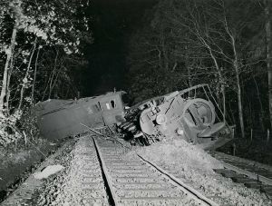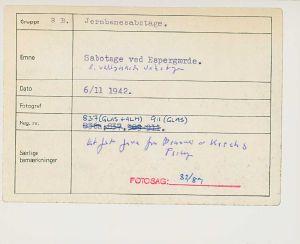Tog afsporet ved Espergærde på Sjælland efter sabotagen natten mellem d. 6. og 7. november 1942. Sabotagen blev udført af en nordsjællandsk gruppe i tilknytning til BOPA
