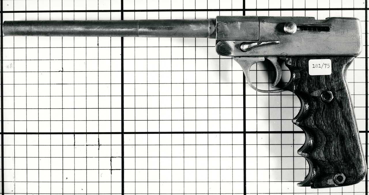 Maskingenkendt tekst fra fotokuvert: Hjemmelavet pistol til enkeltskud (5,6 mm salon-ammunition)