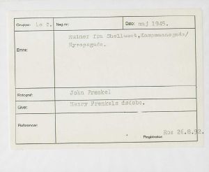 Maskingenkendt tekst fra fotokuvert: Ruiner fra Shelluset, Kampmannsgade/ Nyropsgade.