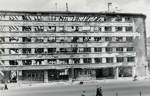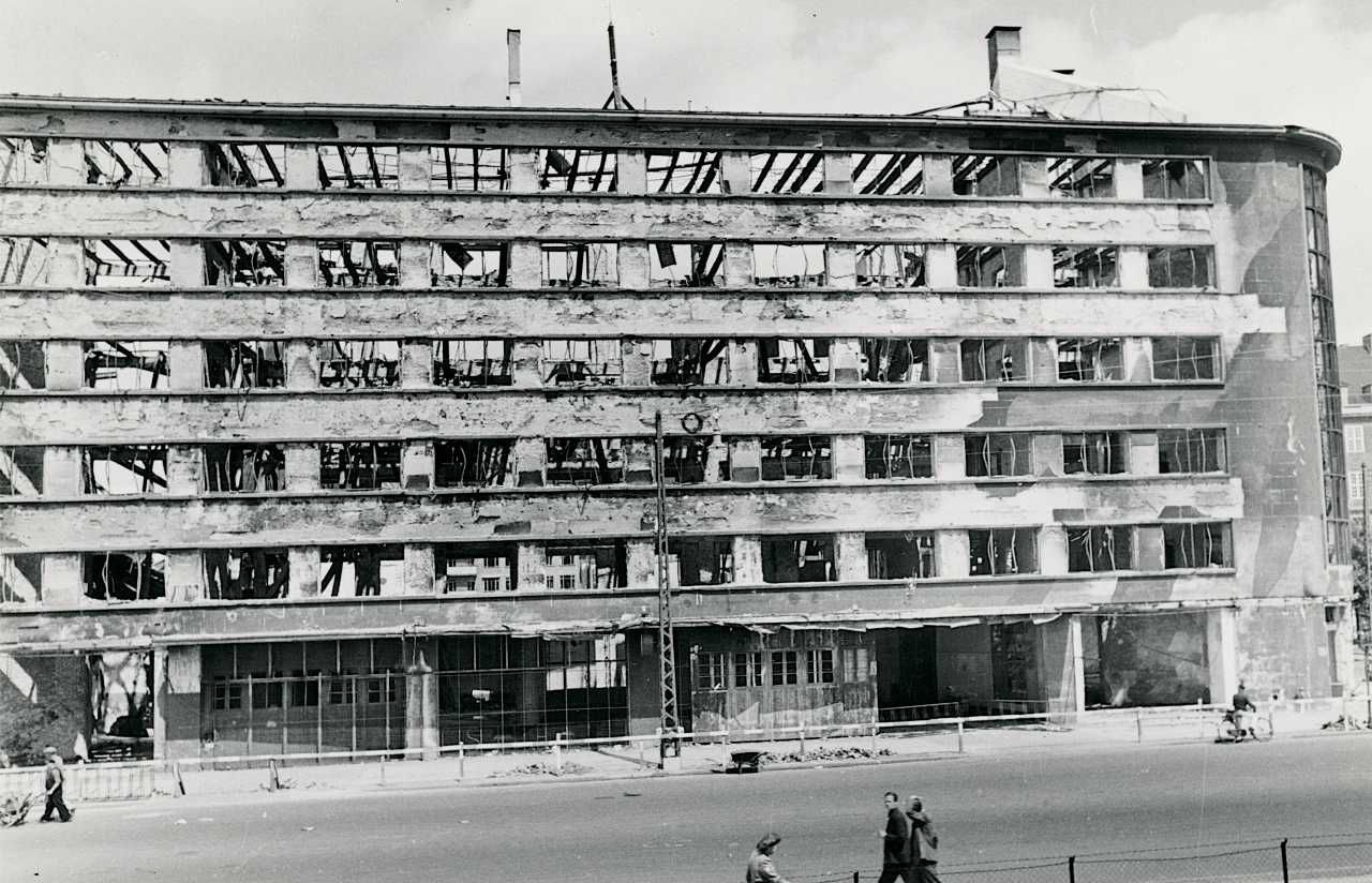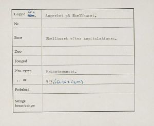 Maskingenkendt tekst fra fotokuvert: Shellhuset efter kapitulationen.