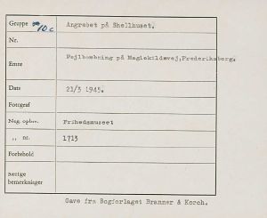 Maskingenkendt tekst fra fotokuvert: Fejlbombning på Maglekildevej, Frederiksberg