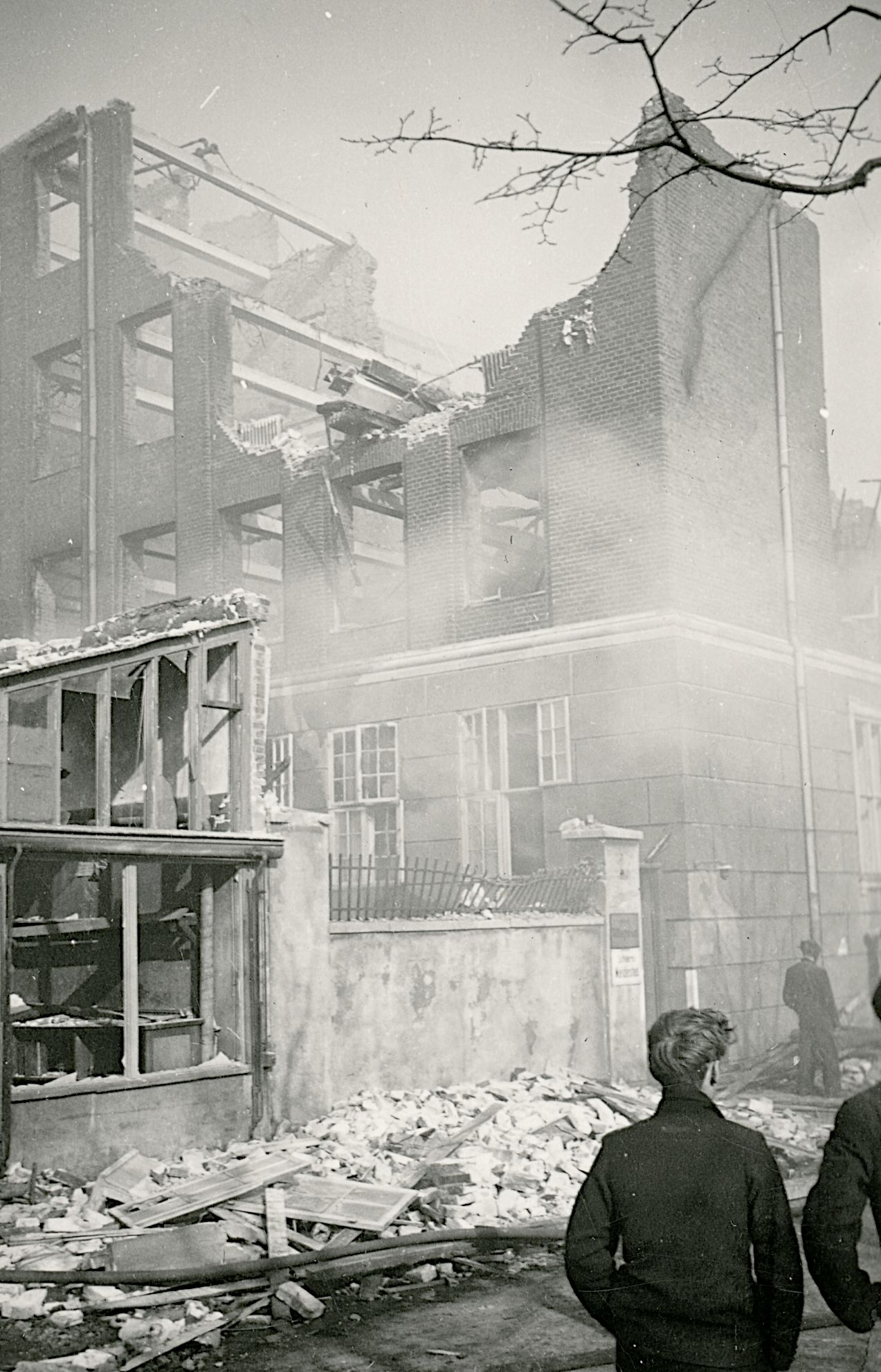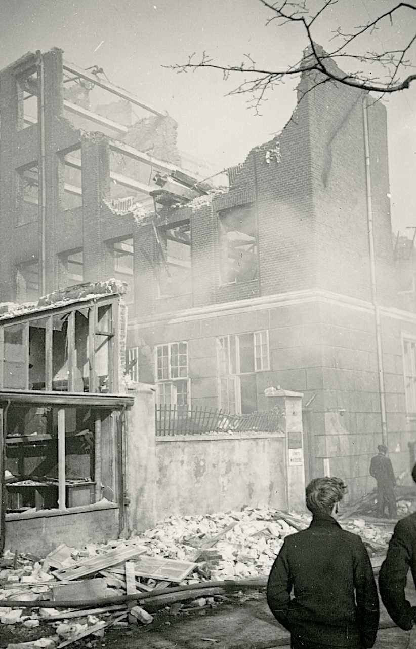 Maskingenkendt tekst fra fotokuvert: Ruinerne af Den Franske Skole.