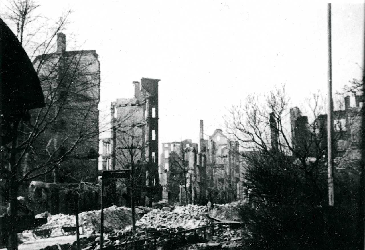 Maskingenkendt tekst fra fotokuvert: Udbrændte boligejendomme på Dr. Priemes Vej på Frederiksberg.