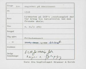 Maskingenkendt tekst fra fotokuvert: Lysmasten på DSBs godsbanegard der var årsag til katastrofen ved den franske skole.