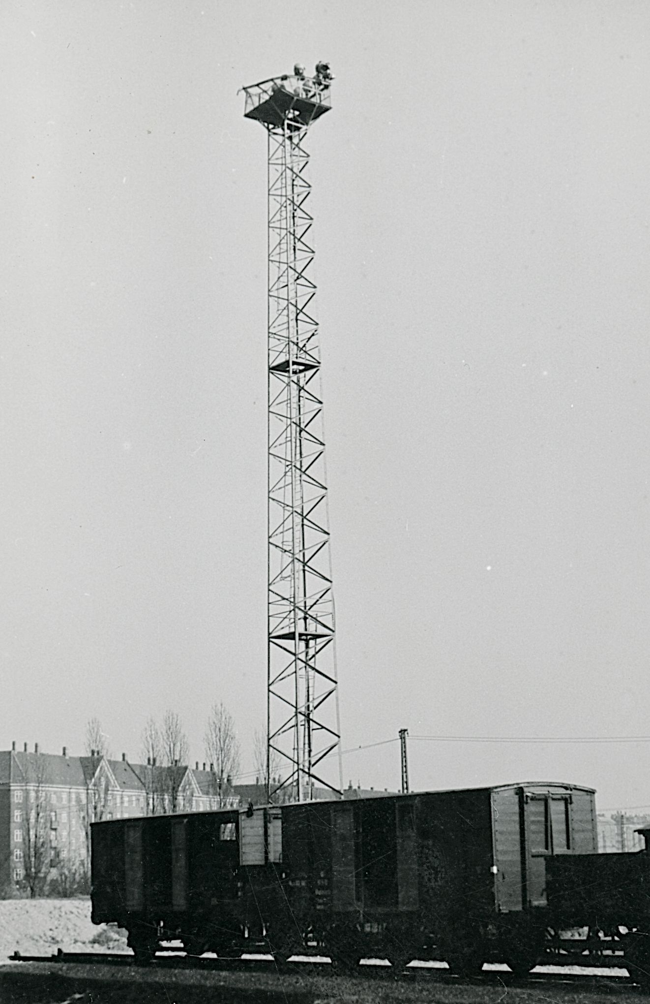 Maskingenkendt tekst fra fotokuvert: Lysmasten på DSBs godsbanegard der var årsag til katastrofen ved den franske skole.
