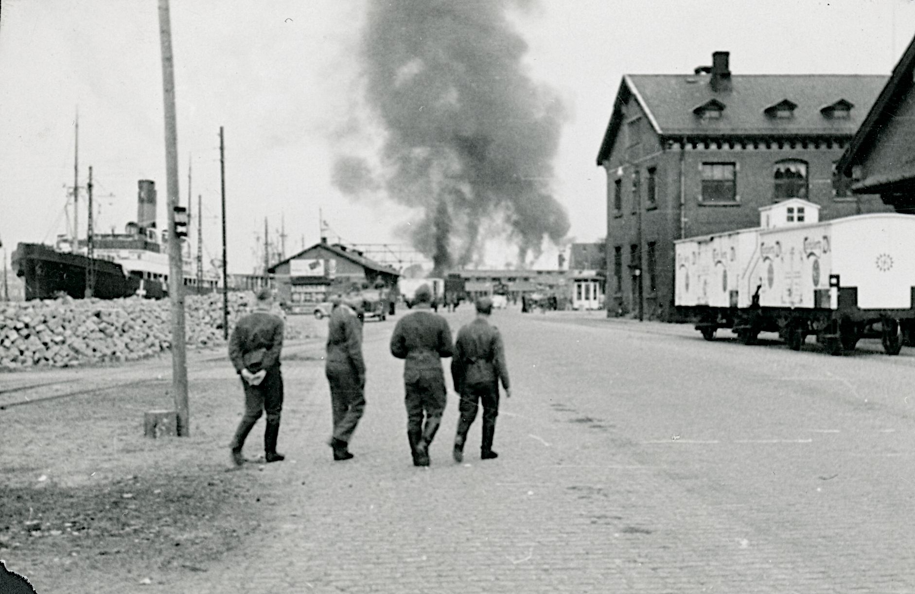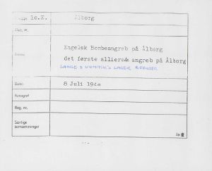 Maskingenkendt tekst fra fotokuvert: Det første allieret angreb på Ålborg.