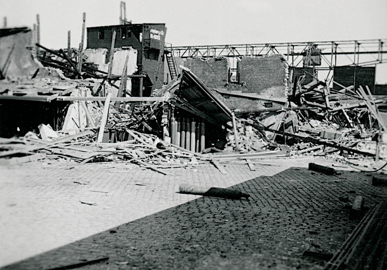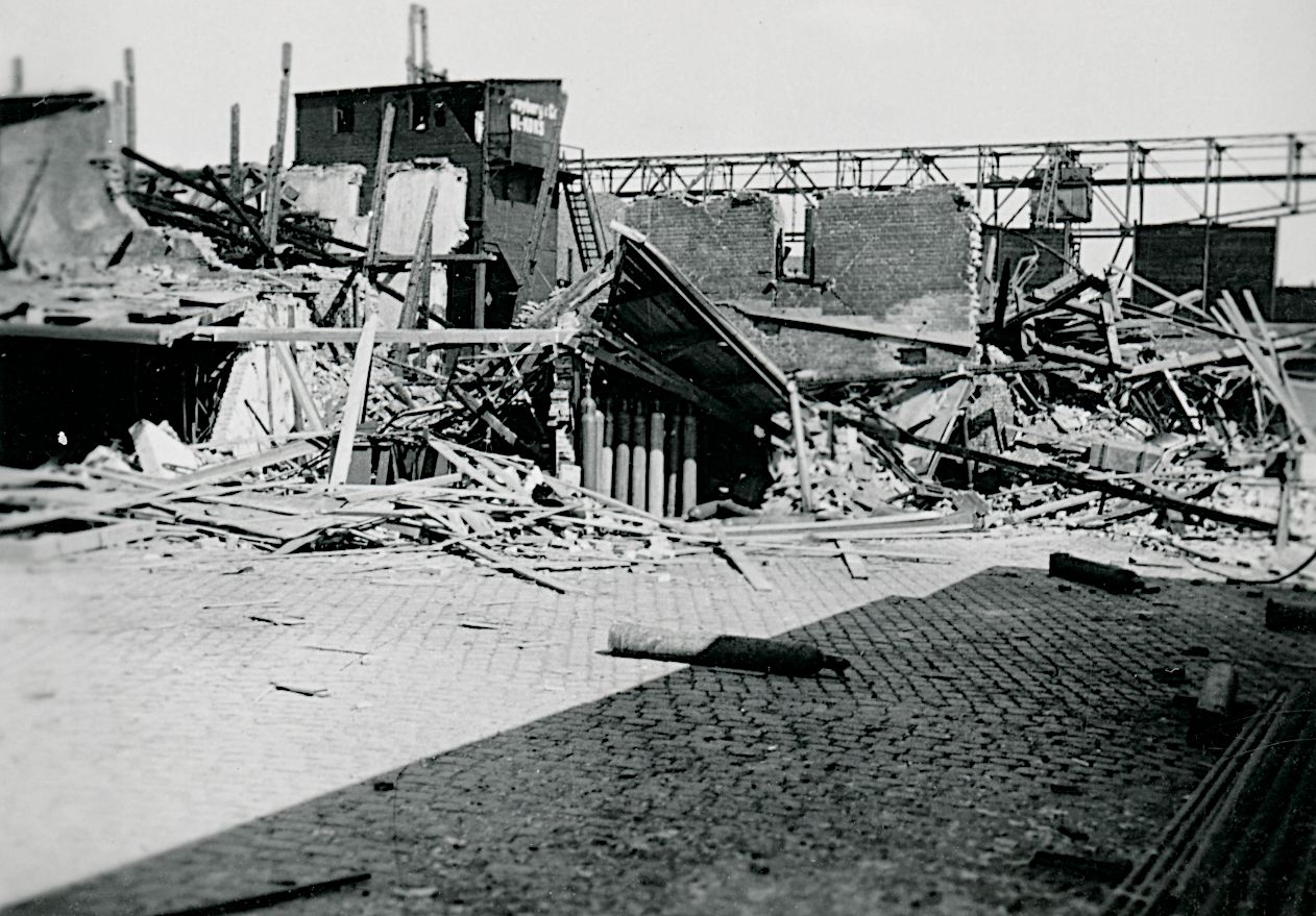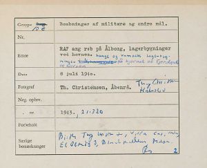 Maskingenkendt tekst fra fotokuvert: RAF angreb på Ålborg, lagerbygninger ved havnen.