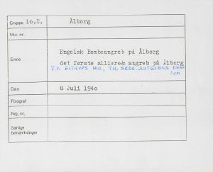 Maskingenkendt tekst fra fotokuvert: Det første allieret angreb på Ålborg.
