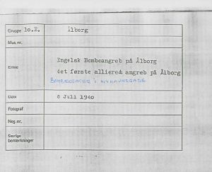 Maskingenkendt tekst fra fotokuvert: Det første allieret angreb på Ålborg.