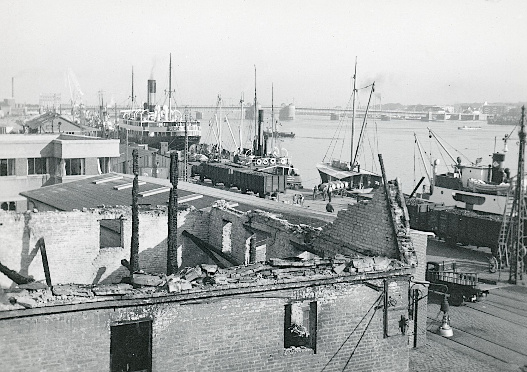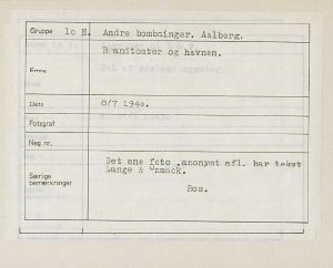 Maskingenkendt tekst fra fotokuvert: Brandtomter og havnen.