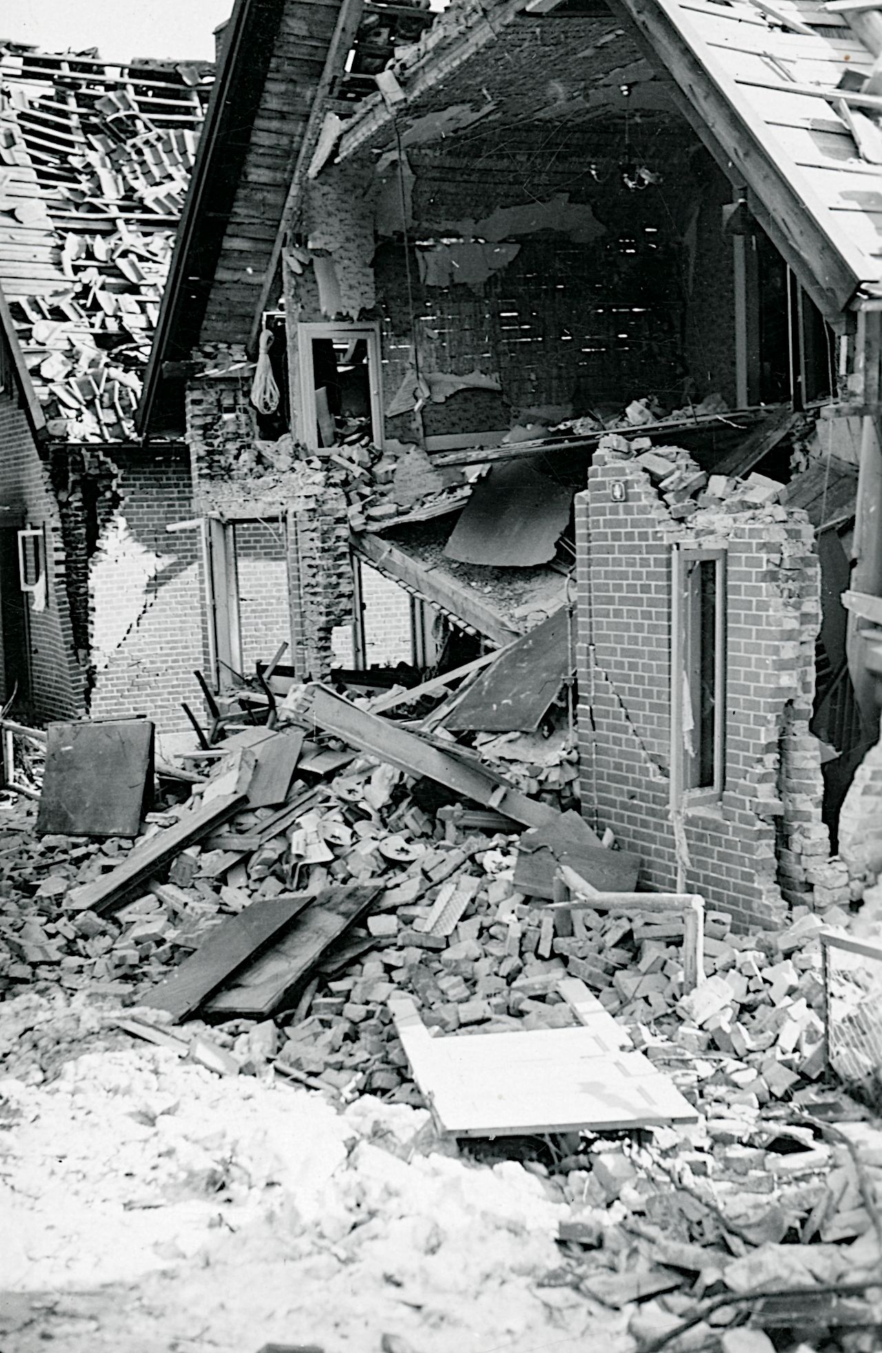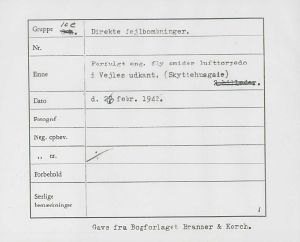 Maskingenkendt tekst fra fotokuvert: Forfulgt eng. fly smider lufttorpedo i Vejles udkant. (Skyttehusgade)