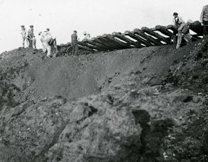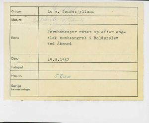 Maskingenkendt tekst fra fotokuvert: Jernbanespor revet op efter engelsk bombeangreb i Bolderslev ved Åbenrå