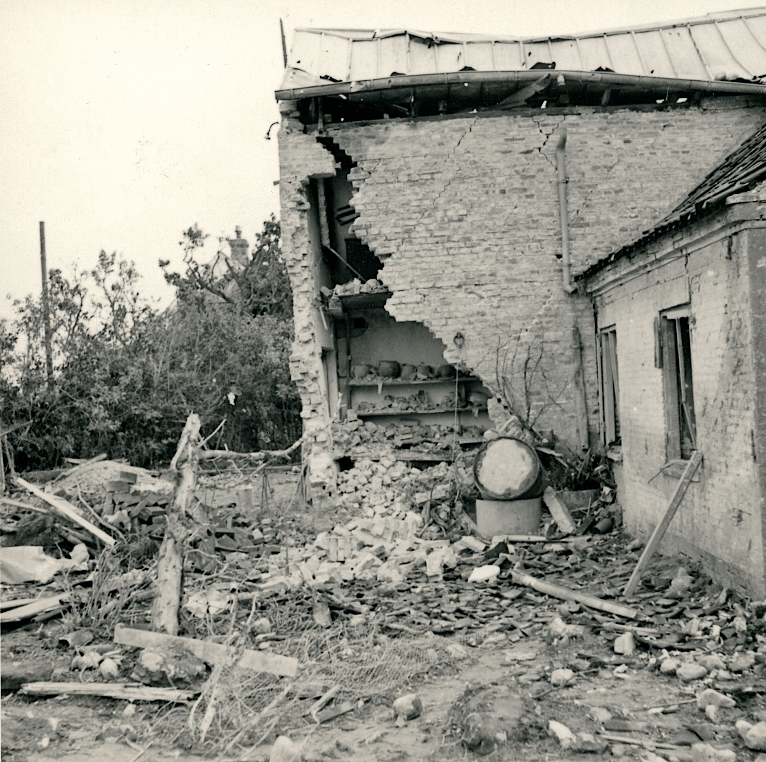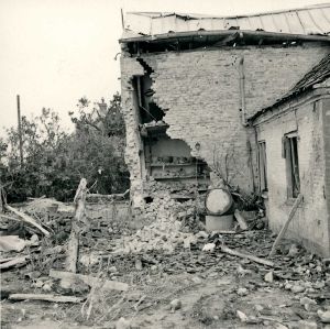 Maskingenkendt tekst fra fotokuvert: Holm Mølle tiIh. møller Chr. Hansen, Holm. Ramt af sprængbomber.