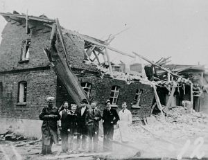 Den 24/7 1944 forårsagede en sprængbombe nedkastet fra en overflyvende maskine omfattende ødelæggelser i Over Jerstal. 40 ejendomme blev beskadiget, 17 personer blev såret og 18 dyr indebrændte. Her ses ruinerne af den gamle mølle