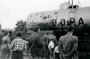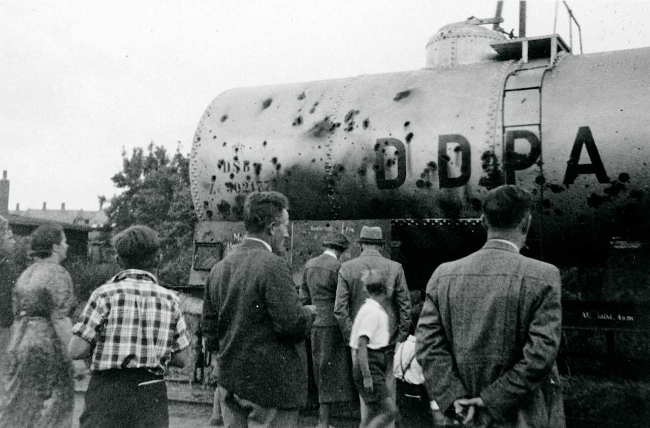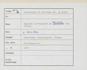 Maskingenkendt tekst fra fotokuvert: Engelsk flyveangreb på jernbanen ved Nyborg,