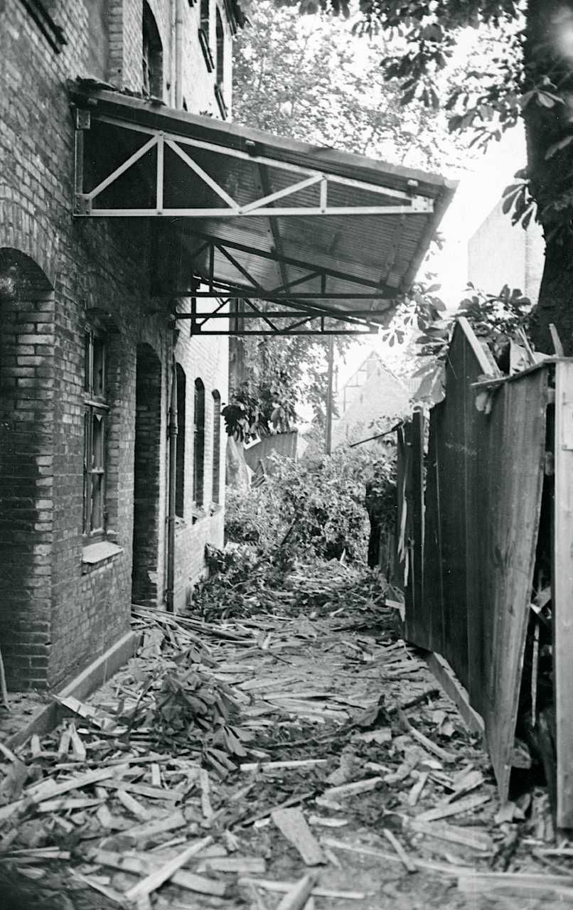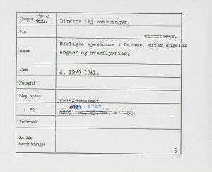 Maskingenkendt tekst fra fotokuvert: Ødelagte ejendomme i Odense, efter engelsk angreb og overflyvning.