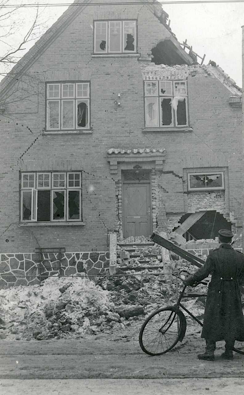 Maskingenkendt tekst fra fotokuvert: Beskadiget hus ? Bülowsvej efter fejlbombningen natten mellem 25/2 og 26/2.