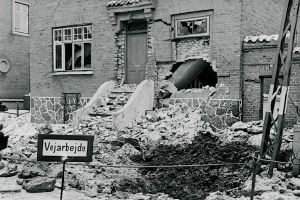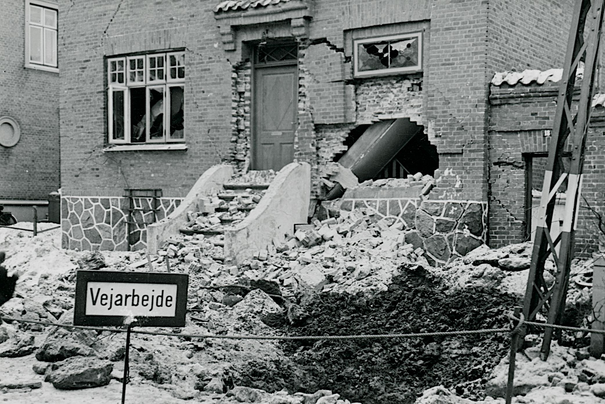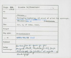 Maskingenkendt tekst fra fotokuvert: Odense. Fejlagtig bombning, på grund af glimt a sporvogn