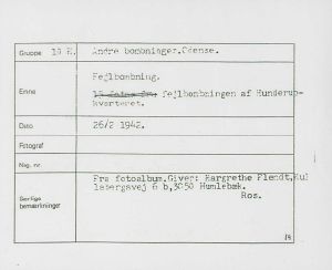Maskingenkendt tekst fra fotokuvert: Fejlbombningen af Hunderupkvarteret.