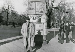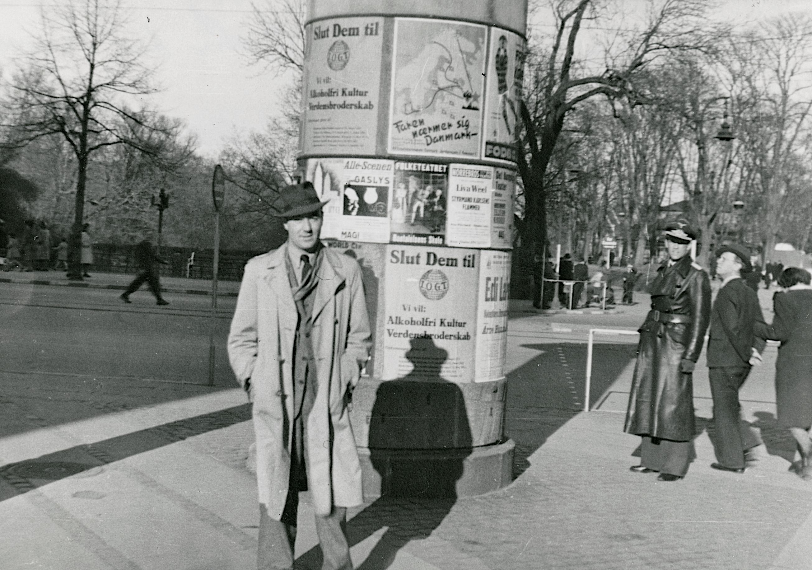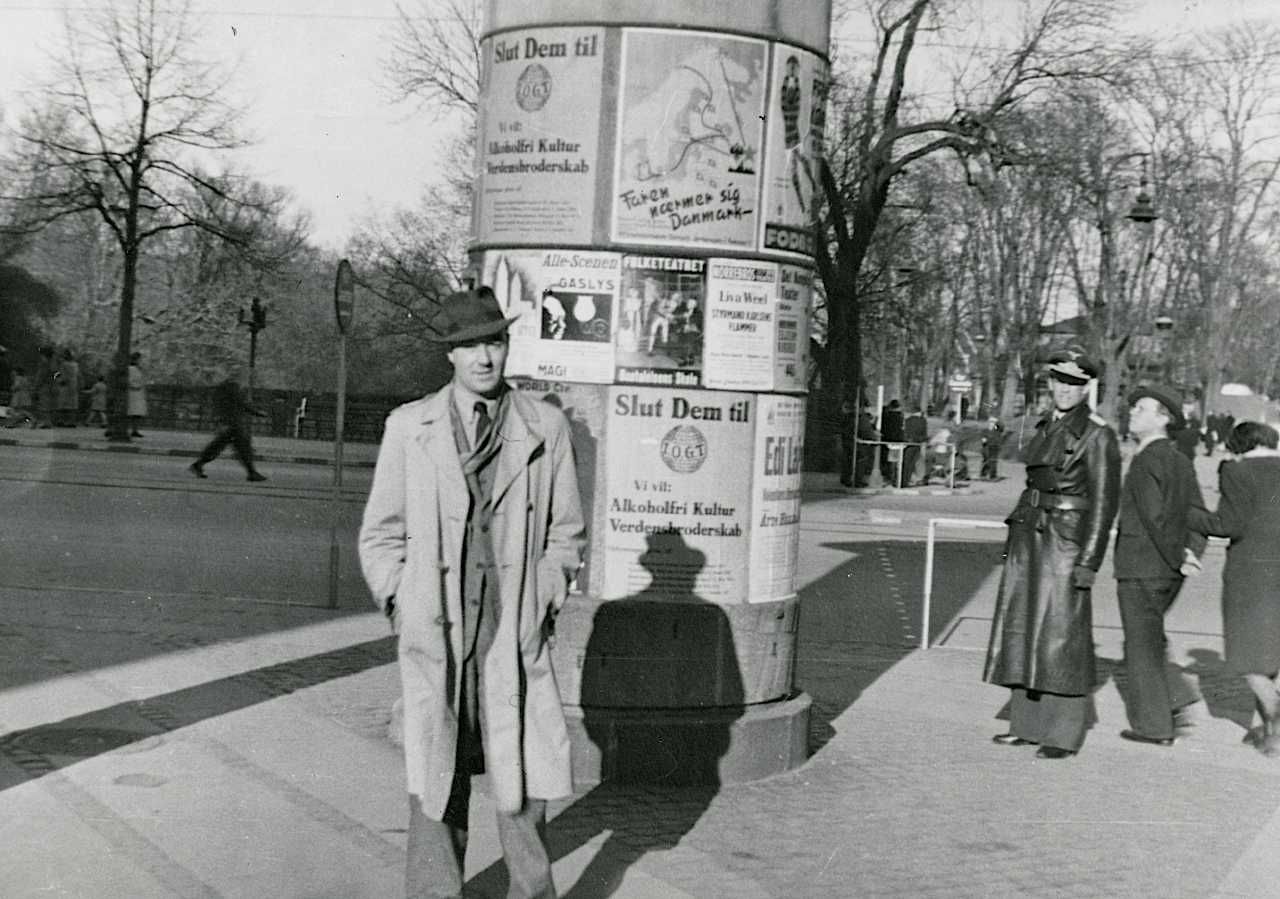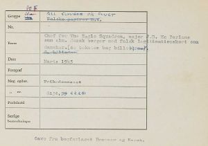 Den amerikanske flyver major J.D. McFarlane (i lys frakke) måtte nødlande med sin Mustang jager ved Søllested på Lolland. Af modstandsbevægelsen blev han hjulpet til København og videre til Sverige. T.v. i billedet en tysk flyverofficer