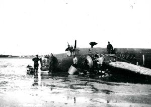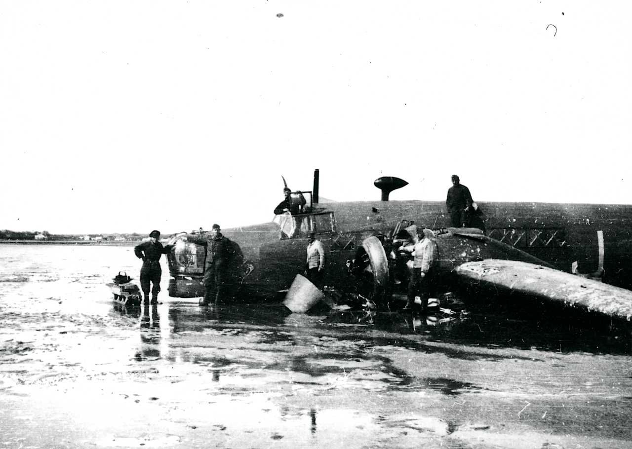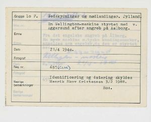 Maskingenkendt tekst fra fotokuvert: En Wellington-maskine styrtet ned v. Aggersund efter angreb på Aalborg.