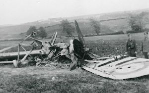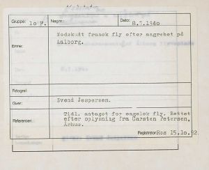 Maskingenkendt tekst fra fotokuvert: Nedskudt fransk fly efter angrebet på Aalborg.
