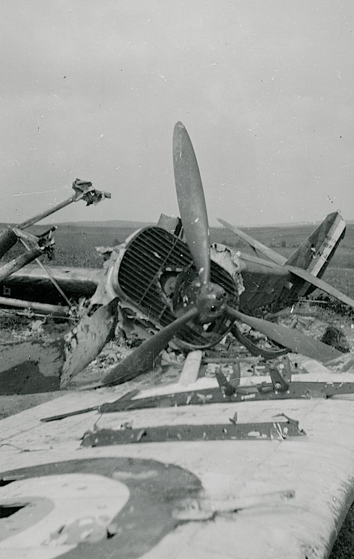 Maskingenkendt tekst fra fotokuvert: Nedskudt fransk fly