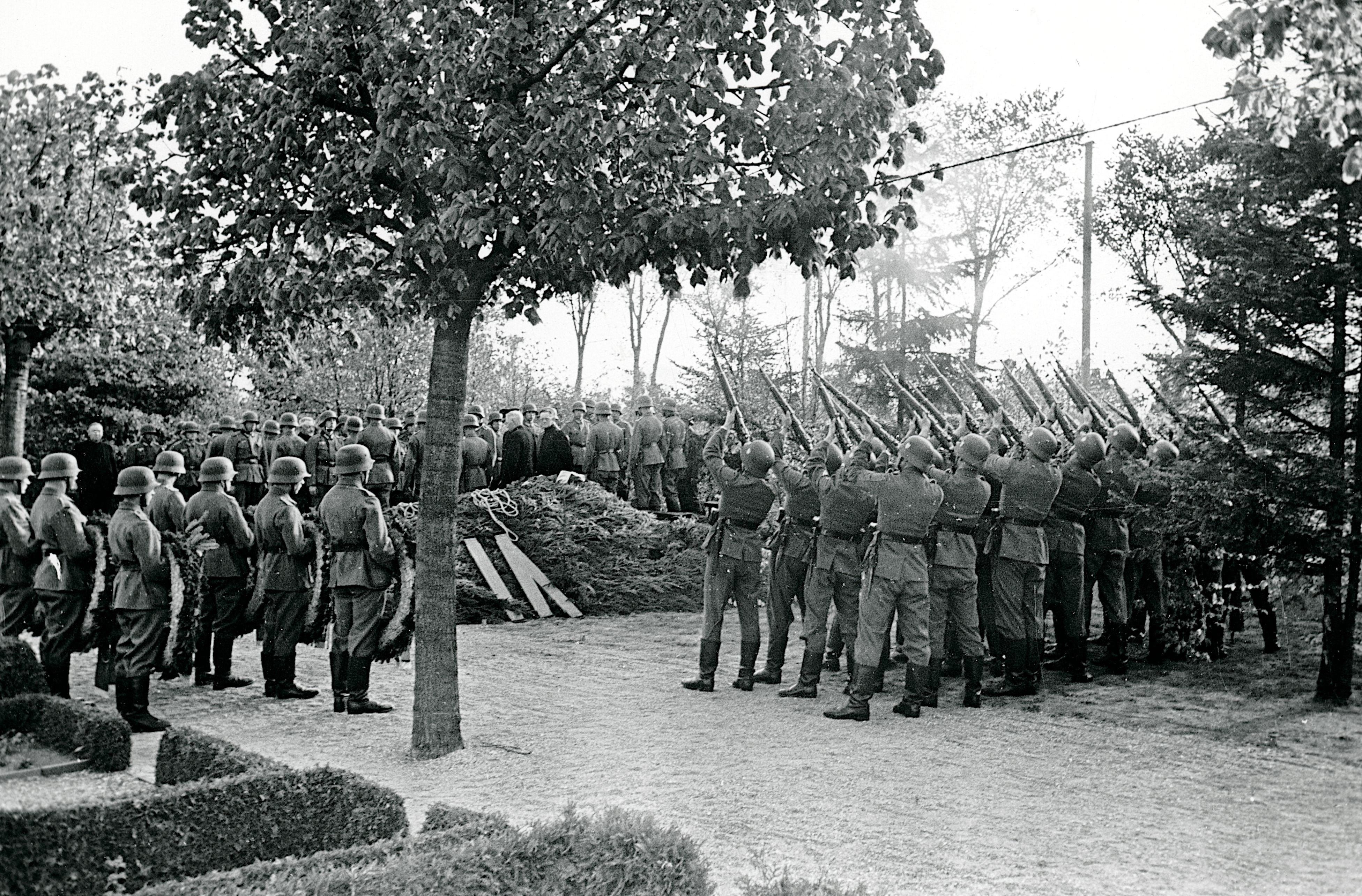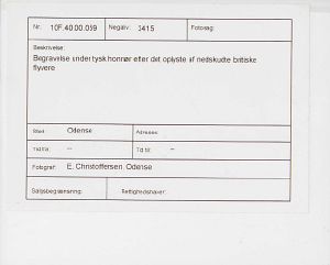 Maskingenkendt tekst fra fotokuvert: Begravelse under tysk honnør efter det oplyste af nedskudte britiske flyvere